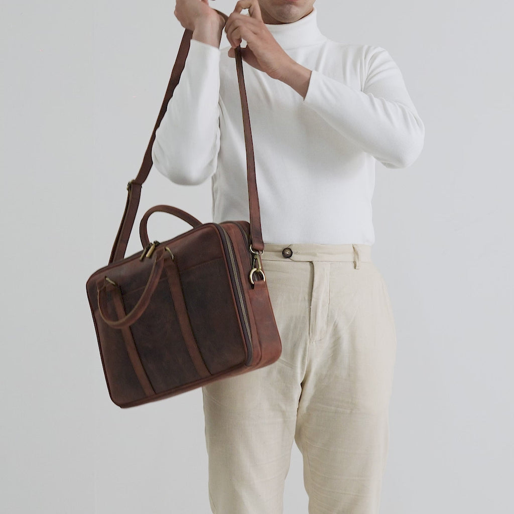 The Norman Vintage Distressed Brown Leather Briefcase